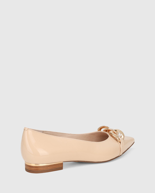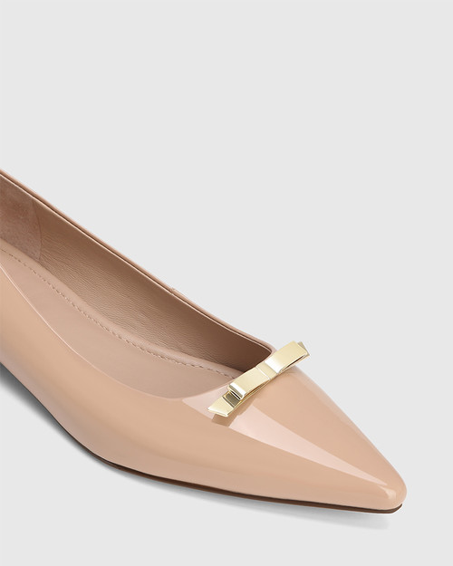 Yes, ballet flats are back! Popularised by Alexa Chung in the early 2010s, the traditional silhouette is ready to replace your go-to pair of sneakers with a feminine touch. Crafted in sleek patent leather and rendered in a blush-toned neutral hue, the Agnes flat will fast become your weekday to weekend go-to. Wear yours with tailored suiting and a knee-length coat for the ultimate workwear wardrobe revival.
