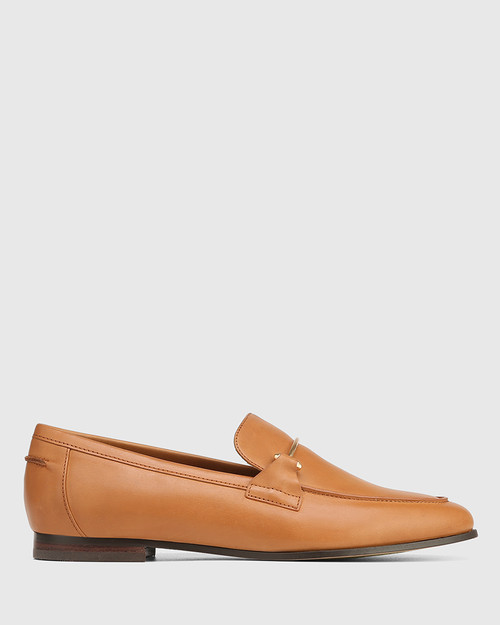 Ditch the lace-ups and opt for something that'll keep you on the go. The Angeles loafer will find modern appeal in your wardrobe with its refined design language that speaks for itself. Crafted in high-shine patent leather and accented with a dainty gold trim, this chic little black flat will see you through those in-between seasons and beyond. Style yours with an all-black ensemble. 1.5 CM / 0.59 INCH Black Soft Patent Leather Leather Lining Flat Rubber Unit Double Layer In Built Padding Almond Toe Resin Sole