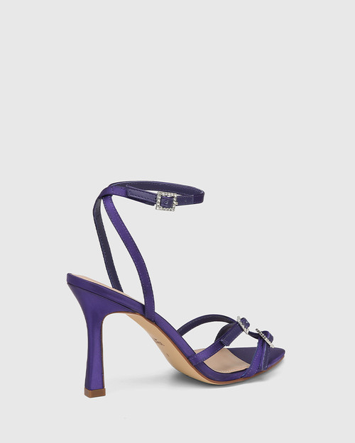 Make a style statement at special occasions with Angelina in citrus. Wrapped in recycled satin, this gorgeous sandal sits on a high gold stiletto heel and features a chunky ankle strap with adjustable gold buckles. This round open toe style comes with our double layer in built padding, promising comfort. Wear them to a party with a satin split dress to elevate your look.