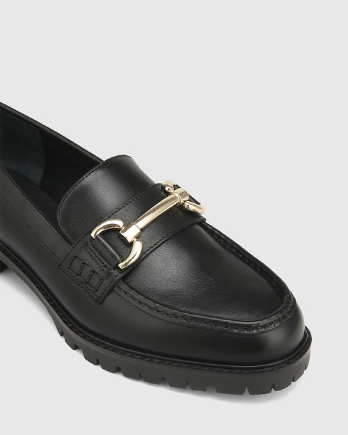 1.5 cm Black Nappa Leather Unlined Flat Polished Leather Stack Double Layer In Built Padding Round Toe Rubber Sole