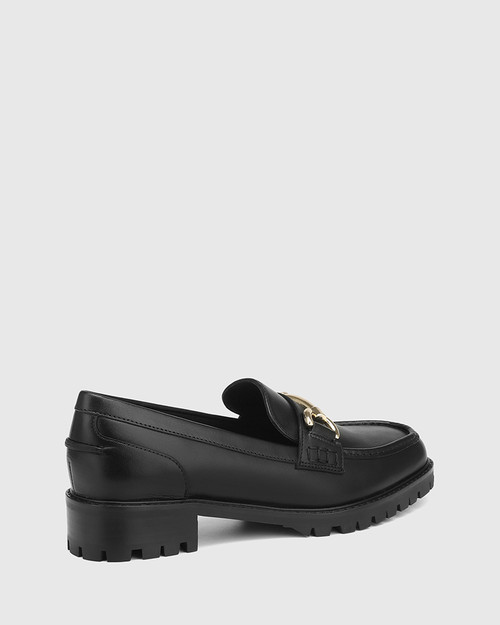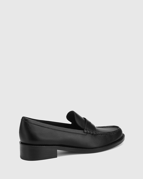 In ultra smooth nappa leather, the Eleni loafer in black delivers effortless style in a chic silhouette. Designed with a classic round toe profile and on-trend rubber sole, with double layer padding inside for easy all-day wear. For that 'Cool Girl' look, style with a black mini skirt and leather bomber jacket.
