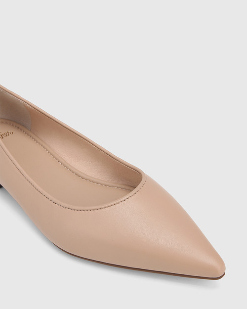 Introduce dainty decorations into your wardrobe with the Minnie flat in patent leather. With a metal-look micro bow, feminine pointed toe, and our iconic double-layer padding, your desk-to-guest styling is made easy! Arguably, there is nothing chicer than a classic neutral flat, so style yours with pants, dresses, and everything in between.