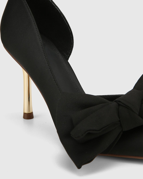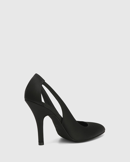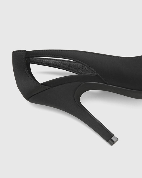 8.5 cm Black Recycled Satin Leather Lining Thin Textile Wrap Double Layer In Built Padding Point Toe Resin Sole