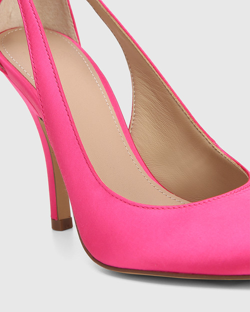 Sophisticated and elegant - the Verdie in black will effortlessly take you from day to night. Crafted in recycled satin, this versatile pump is set on a high stiletto heel and features cut-out details. Style this almond toe pump with black tailored trousers to office or with a satin slip dress for an evening look.