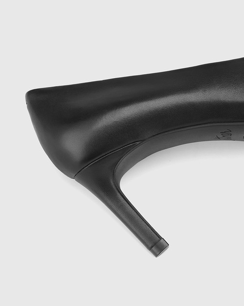 The Hunting is a contemporary update to the classic pump, designed to elevate any look and add feminine flair. 8cm / 3.14 Inch Block Heel Natural Wood Wrapped Heel Pointed Closed Toe Microfibre Bow Embellished Strapping Black Suede Upper Leather Lining Single Layer Cushioned Footbed Resin Sole.